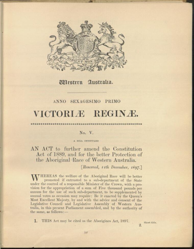 Aunty was born and lived through the era of the West Australian 1905 Act, similar to Victoria's Aborigines Protection Act. She may not have noticed it as a kid but her family's life was quite controlled by this piece of legislature.